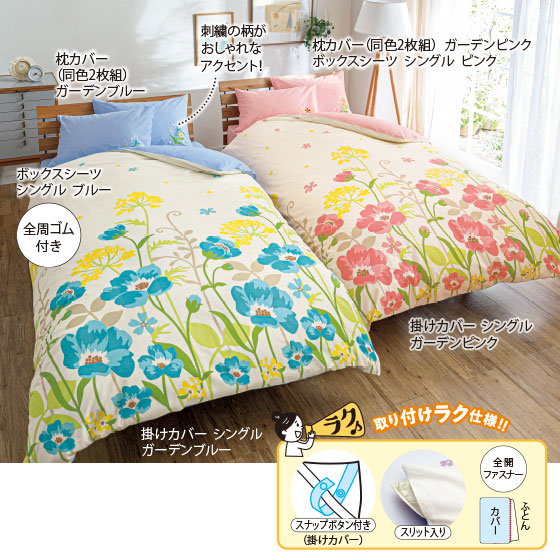 ※洗濯の可否・方法は各商品の洗濯表示をご確認ください。洗濯時にはネットをご使用ください。ご家庭の洗濯機に入らない場合がございますので、取扱説明書をご確認の上、難しい場合は手洗い、またはふとんが洗えるコインランドリーをおすすめいたします。※寝具商品は、生地幅の関係上ハギ(つぎ目)が入ることがございます。また裁断の都合により柄の出方が多少異なりますので、あらかじめご了承ください。