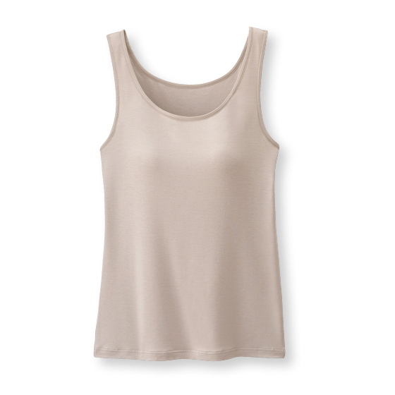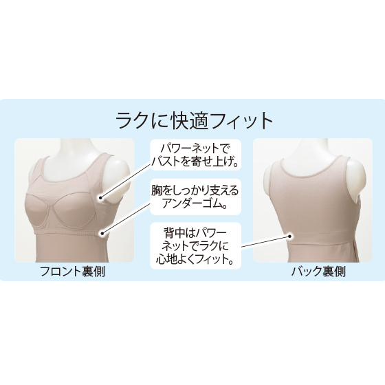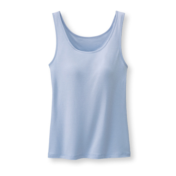 1枚で出かけたい夏だから、頼れるブラ機能と涼しい着心地を叶えました。薄くフィットして汗をサラッと逃がし、ベタつきやニオイも抑えます。