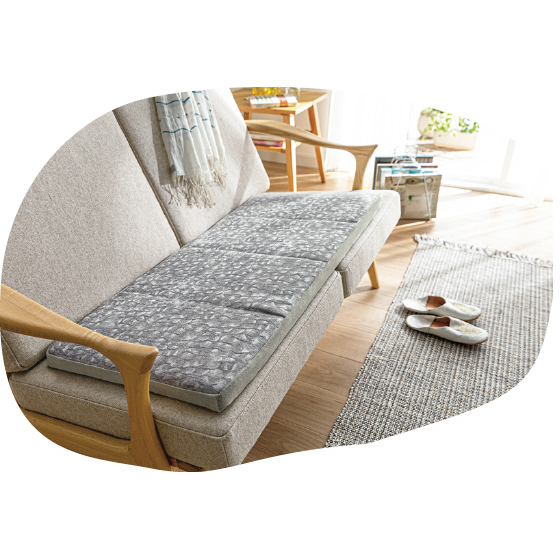 お気に入りのソファ、最近ヘタリ気味だけど買い替えるにはもったいない…そんなときは、座面にこのシートを敷いてみて。適度な弾力のある中材が座り心地をアップ。カバーは通年使いやすいリバーシブル仕様です。