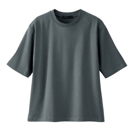 ●素材:綿100%(ニット、スムース、接触冷感・防シワ加工)、別地部分=綿65%・ポリエステル35%(ニット、フライス)