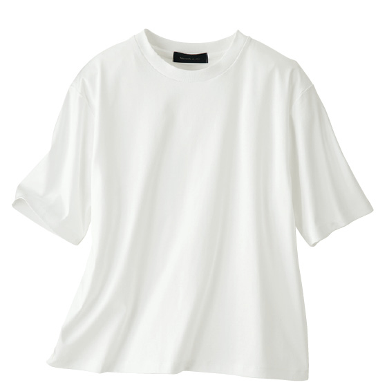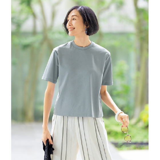 上品なツヤ感があり、洗濯後のシワも抑えるこだわりのコットン素材。大人が着やすい絶妙丈で、どんなコーデも好バランスに。