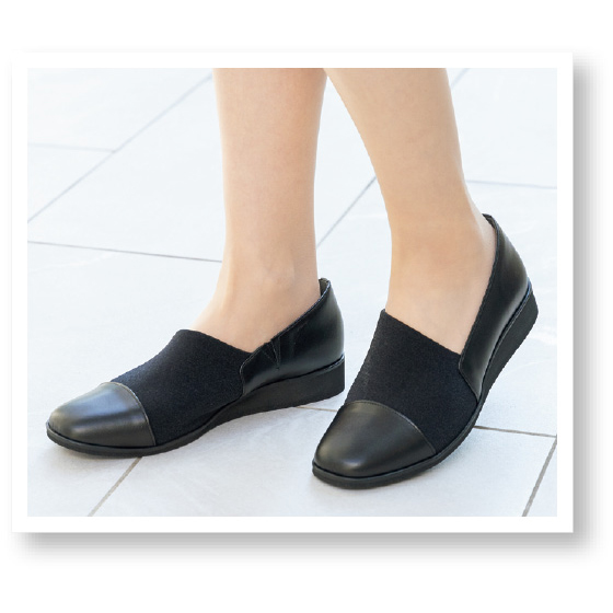返りのよい底とストレッチ素材でやわらかく足になじんでラク。