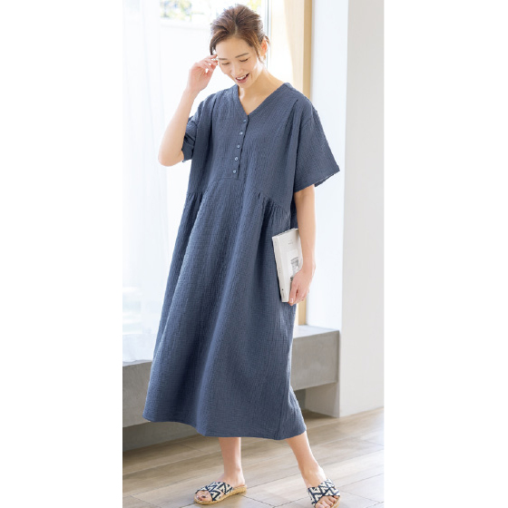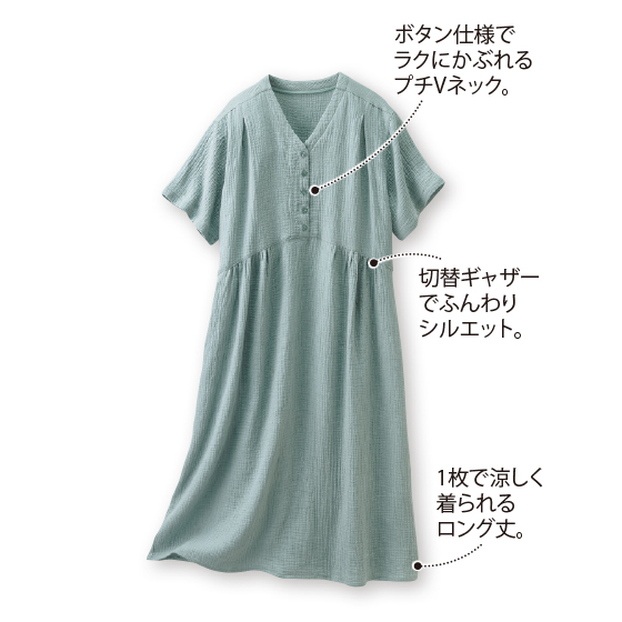 すぽっと着て風が通る、ゆるり楊柳2重ガーゼ