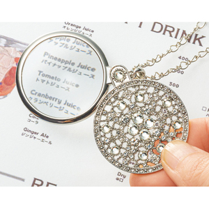 ●材質:本体=亜鉛合金(亜鉛メッキ)・クリスタルガラス、レンズ=樹脂、チェーン・留め具=鉄(亜鉛メッキ)