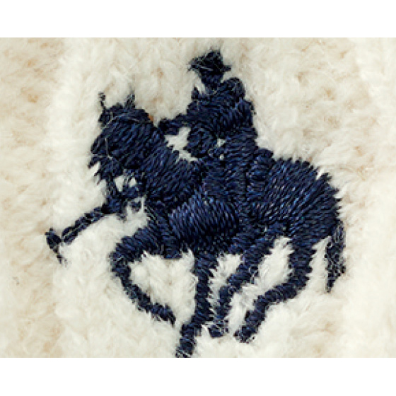 トラッドな印象のニットを、ゆるシルエットで絶妙なカジュアル感に。胸元にあしらった「POLO BCS」のプレイヤー刺繍がアクセント。ワイドパンツやスカートにも合わせやすいコンパクトな丈感です。