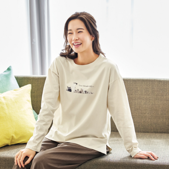 ワンちゃん&ネコちゃんのフォトプリントが、大人可愛いアクセント。静電気防止加工でほこりや毛がつきにくく、快適に過ごせます。