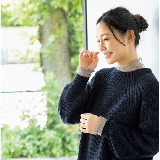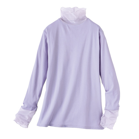 衿元と袖口がチュール、身生地は吸湿発熱素材で暖かな着心地。いつもの服と重ねるだけで新鮮な表情に。