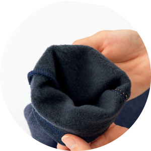 1枚生地を肉厚に起毛。重ねばきしなくても、すっきり暖かです。
