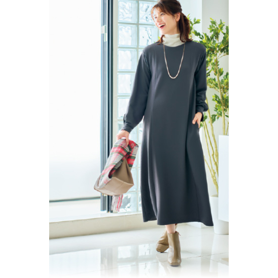 ガンガン着ても“着倒し感”が出にくく、キレイ見えが続く優秀素材「マルチテック」が、暖かな冬仕様のワンピースに!パッと着るだけで旬のオシャレが完成します。
