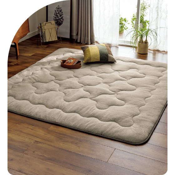 ●素材:表側=ポリエステル99%・ナイロン1%、中材=ポリエステル100%・アルミ蒸着不織布、裏面=不織布張り(すべりにくい加工)