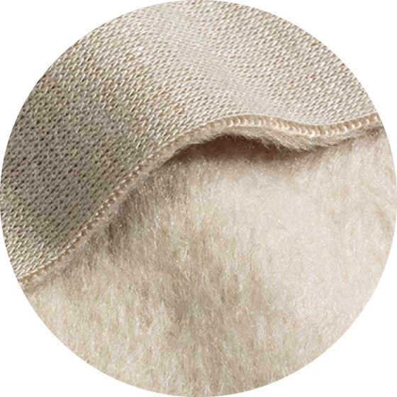●素材:ポリエステル60%・レーヨン35%・ポリウレタン5%(ニット、ダブルフェイス・タテヨコのび、裏起毛加工)