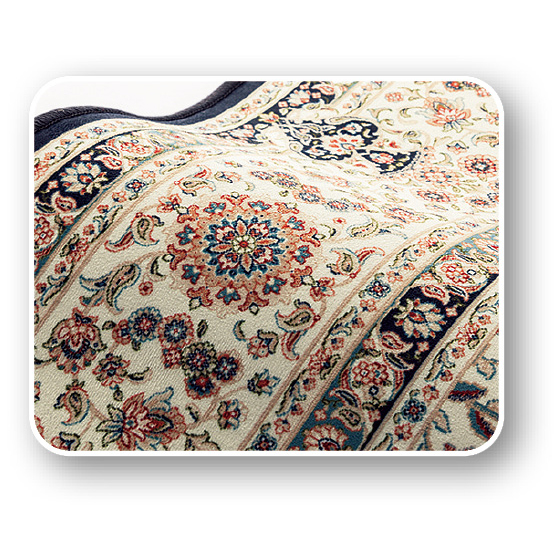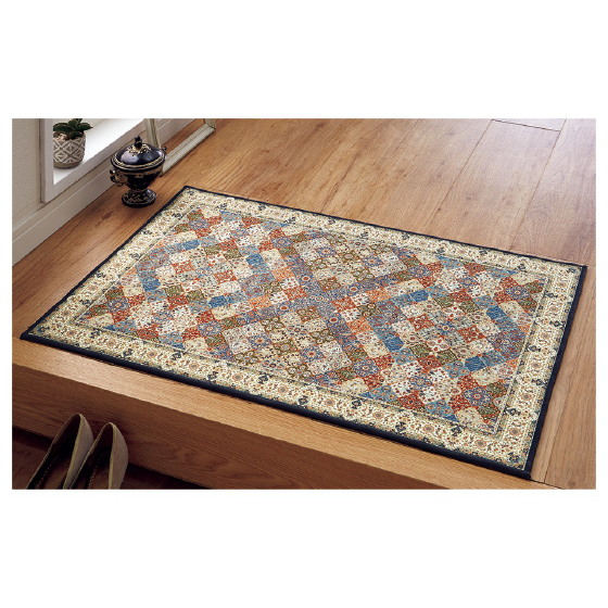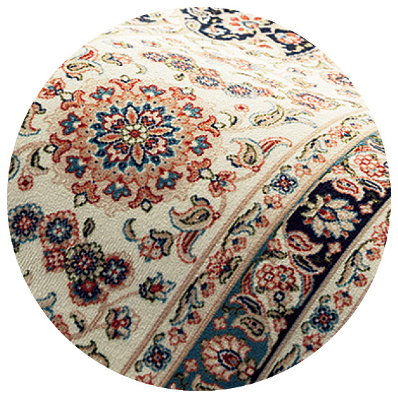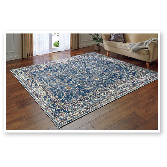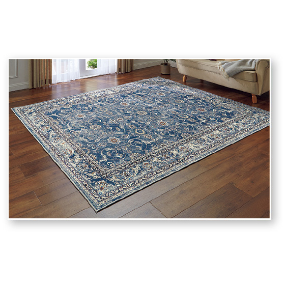 ペルシャじゅうたんを思わせる繊細で優雅な2柄。ブラウン系とネイビー系で柄が異なり、お部屋に合わせて選べます。