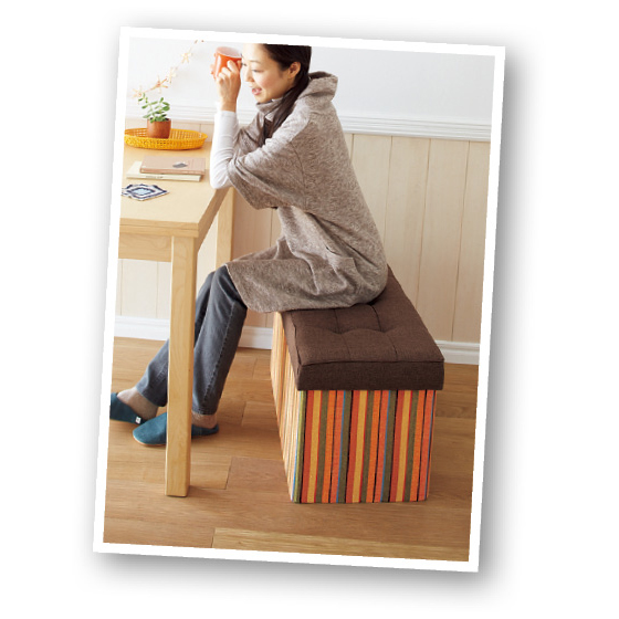 リビングには新聞や雑誌、紙袋、おもちゃなどが散乱しがち。急な来客にもあわてないよう、ふだんからこの中にパパッと片付けておけばOK。ペットに触れられたくない物の収納にも。蓋のクッション性&しっかりしたつくりにも定評あり!