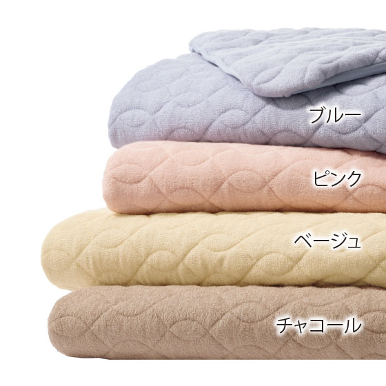 ●素材:表側=毛羽部/綿100%、グランド糸/ポリエステル100%、裏側=ポリエステル100%、詰めもの=ポリエステル100%(抗菌防臭加工、シングル=0.3kg、セミダブル=0.36kg、ダブル=0.42kg、クイーン=0.48kg、キング=0.6kg)、マチ部分=ポリエステル93%・ポリウレタン7%
