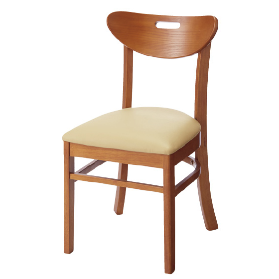 背もたれのカーブがやさしくフィットして座りやすい。北欧調インテリアにも。持ちやすいくり抜き取っ手付き。