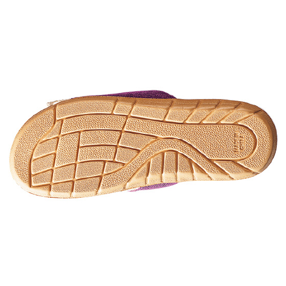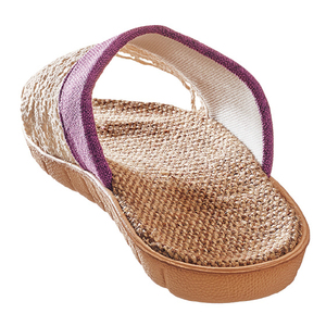 中板はざっくりとしたジュート混で足裏サラサラ。甲部分はトーションレースと表情豊かなスラブ生地の切り替えで通気性がよく見た目も涼しげ。汗ばむ季節も心地よくさわやかな足元に。足の形に成型されたインソールが足裏にフィット。パタパタしにくく歩きやすい。底面はクッション性があるEVA素材。踏み心地快適、汚れたら拭くだけ。