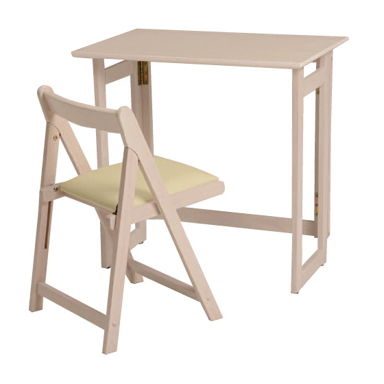 折り畳み式なので不要な時は場所を取らず収納出来る。組み立てもシンプルで不器用な私でも簡単に組み立てられました。また子供の勉強机にも使用できるし、とっても便利です。机と椅子がペアでお得感があります。追加で注文しました。