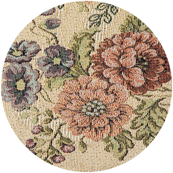 高級感のある金糸入りのジャカード織。立ち上がりやすいひじ掛け付き。