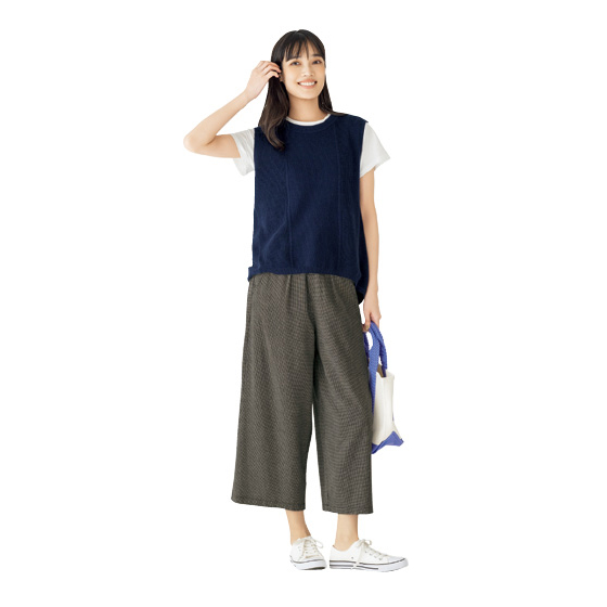 足首が見えるクロプト丈でコーデを軽やかに。脚のラインを拾いにくい、ほどよいワイド感です。※春夏秋におすすめです。