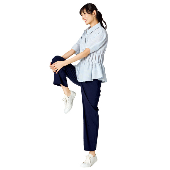 ●素材:レーヨン54%・ナイロン32%・麻9%・ポリウレタン5%(織物、平織・ヨコのび、接触冷感素材、吸水速乾加工)