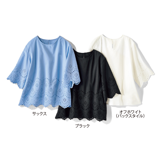 華やかさも涼しさも叶えるシフリー刺繍を贅沢に使用。身頃部分は2枚仕立てだから、透けを気にせず着られます。