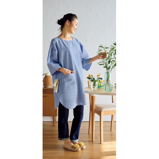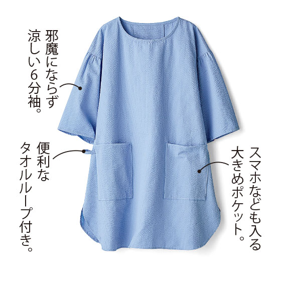 サッカー生地だから、サラっと涼しく着られて夏場の家事の作業効率もアップ!