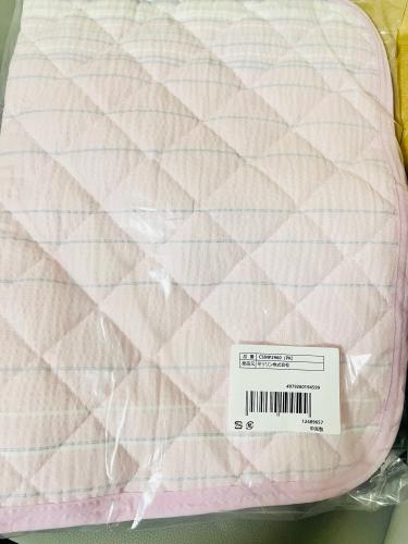 ●裏4隅にズレ防止のゴムベルト付き(敷きパッド)、ゴムベルト2本付き(枕パッド)