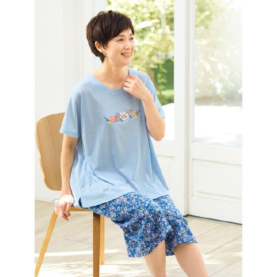 〈日比谷花壇〉の花と暮らす、綿混天竺のルームウエア。