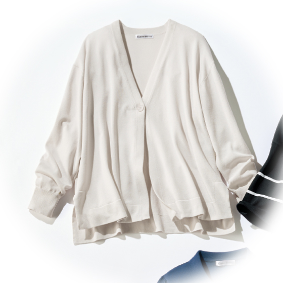 長すぎず短すぎない絶妙丈。薄手で涼やかな夏の長袖で、外出時の肌をしっかりカバー。