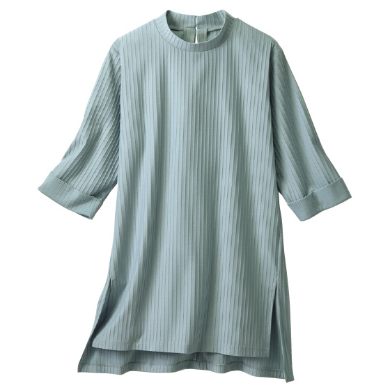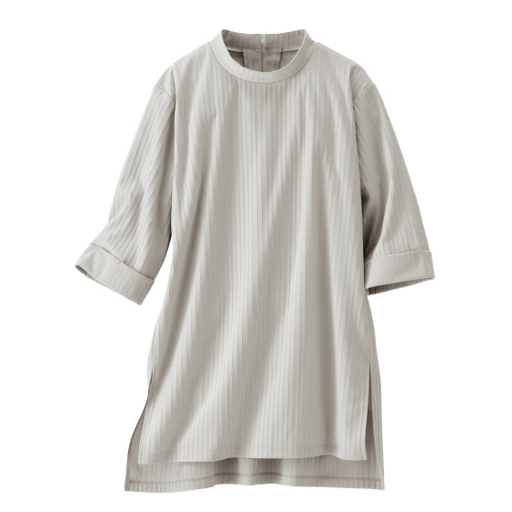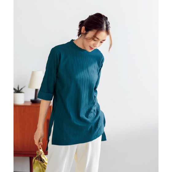気になる二の腕、腰回りをカバーする、ゆるシルエットと袖感。体形を拾いすぎない厚みで、すっきり見えるのにラクな着心地です。