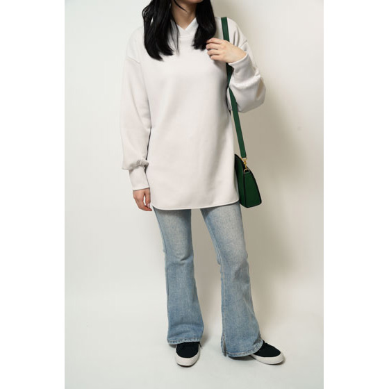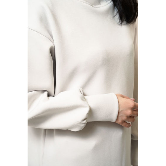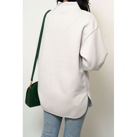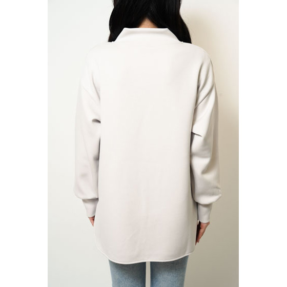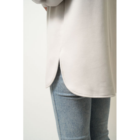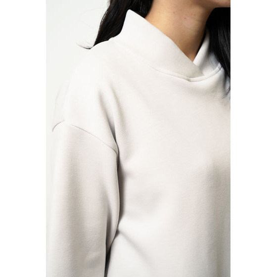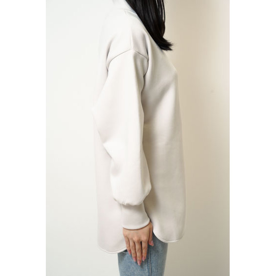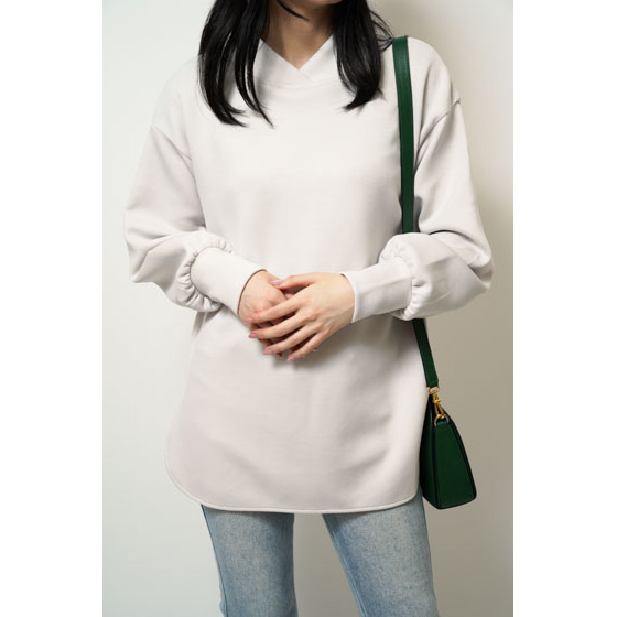 パーカーはフードの重みで首が絞まってしまい、苦手でしたが、こちらはパーカー風の首元。ダウンやコートを着る際もたつかないです