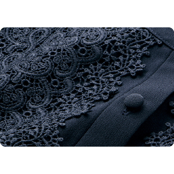 ※写真とレースの柄の出方が多少異なります。この商品はデザインの特性上くるみボタンを使用しております。ボタンがすべらないため、着脱に難を感じる場合があります。