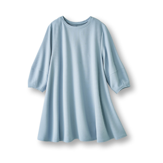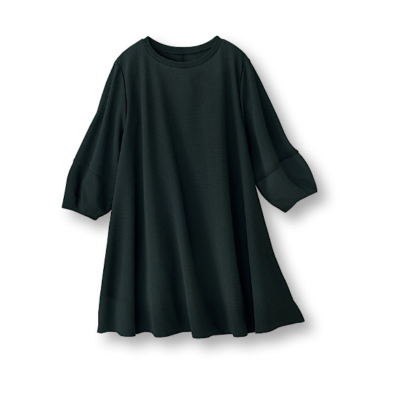 ゆったりAラインとぽわん袖で、気になる体形をおしゃれに目隠し。