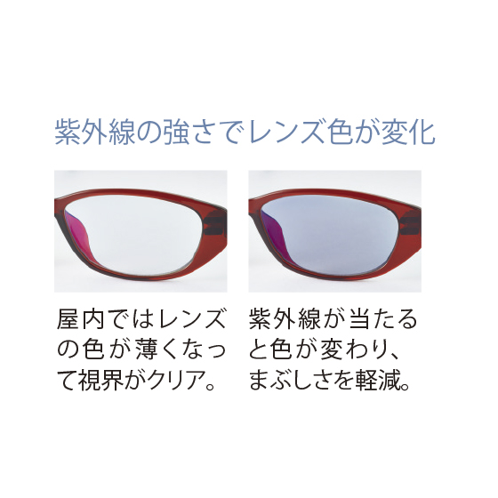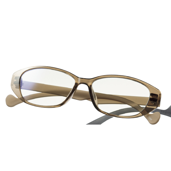 軽くてソフトな掛け心地。小顔見せデザインが魅力。屋外ではサングラス、室内ではPCグラスとしても活躍。ソフトケース付き。