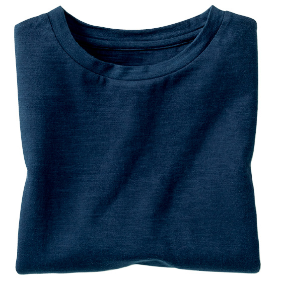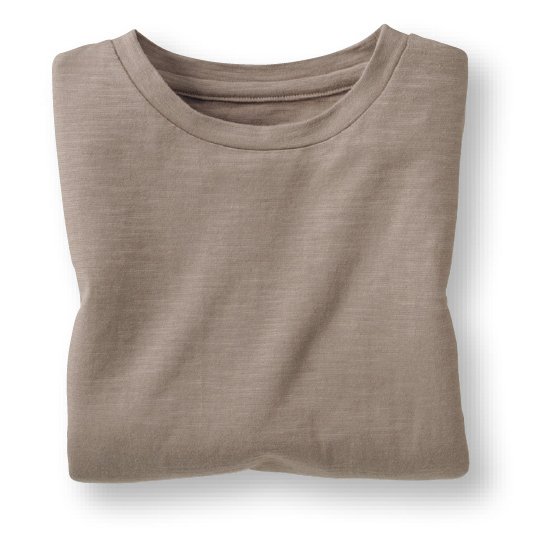 肌離れのいい表面感のあるスラブ天竺素材。ゆったり5分袖で二の腕カバー。両わきにスリット入り。