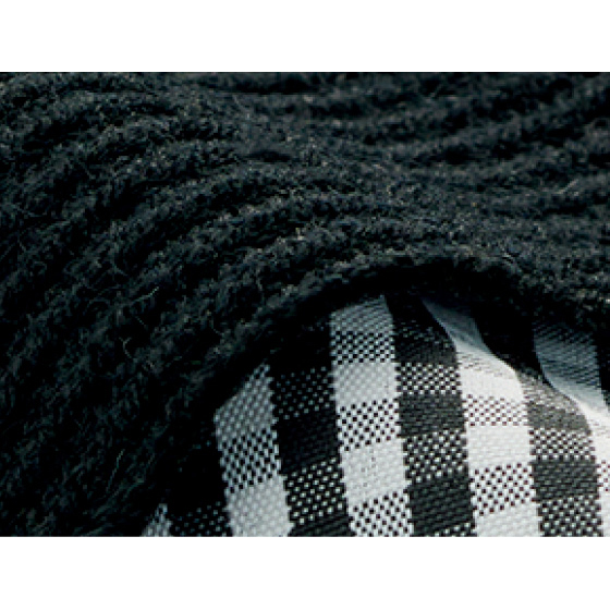 ●素材:ポリエステル85%・レーヨン10%・ポリウレタン5%(ニット、ヘアリブ)、布帛部分=チェック系/ポリエステル95%・レーヨン5%、ストライプ系/ポリエステル100%(織物、ブロード)