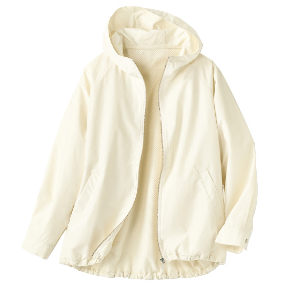 春に頼れる2層構造。表地は、防風加工を施されたはっ水素材。裏地は、吸湿発熱する起毛メッシュでヒヤッとしにくい着心地。