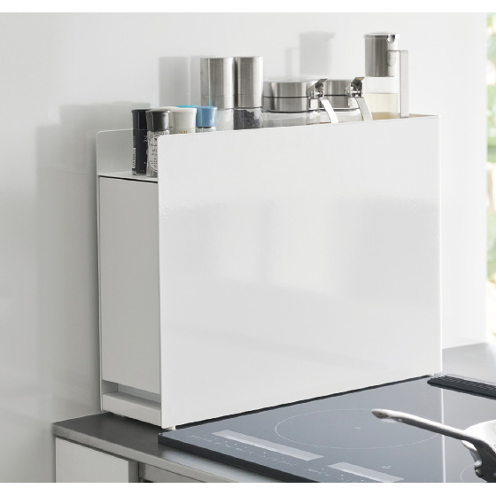 油や醤油のボトルも入る大容量。汚れもひと拭きで、お手入れがラク。マグネットがつけられるスチール素材。