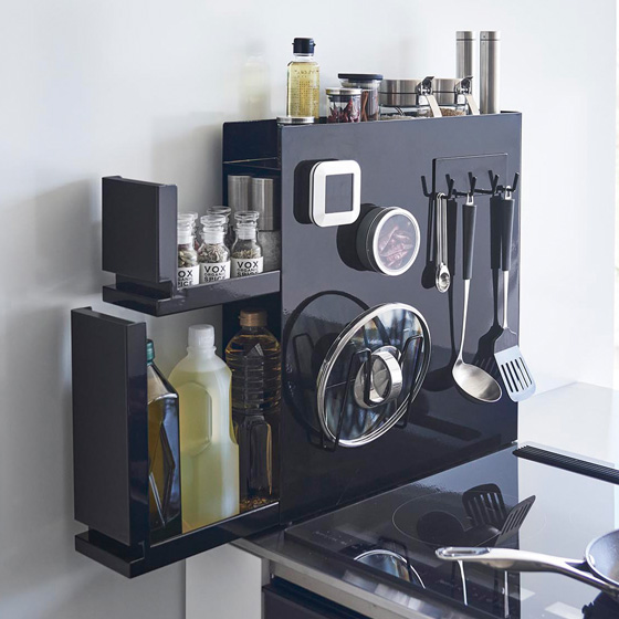 高級感のあるスマートなラック。油や調味料がコンロ横に集結!