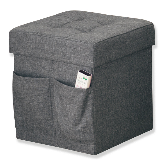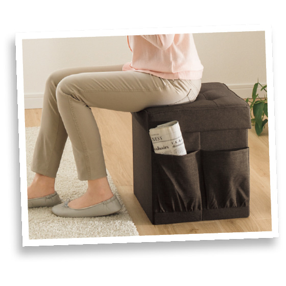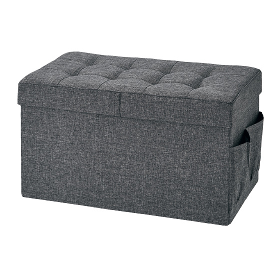 座り心地ふっくら!ダブルの蓋は真ん中で折れるので、開閉もラク。大きめの本やアルバムなども入れられます。大きめポケット付き。(一側面のみ)