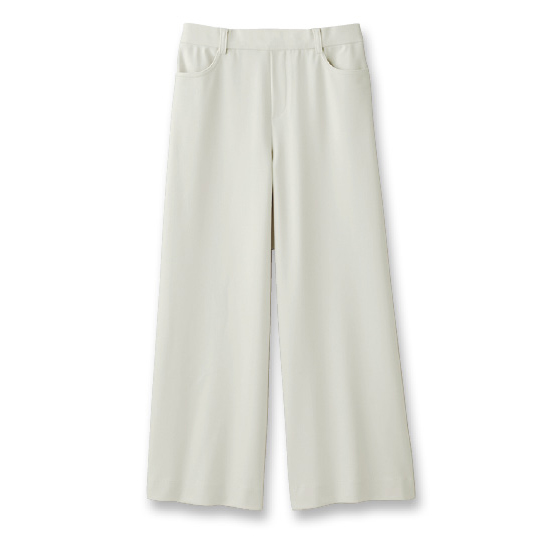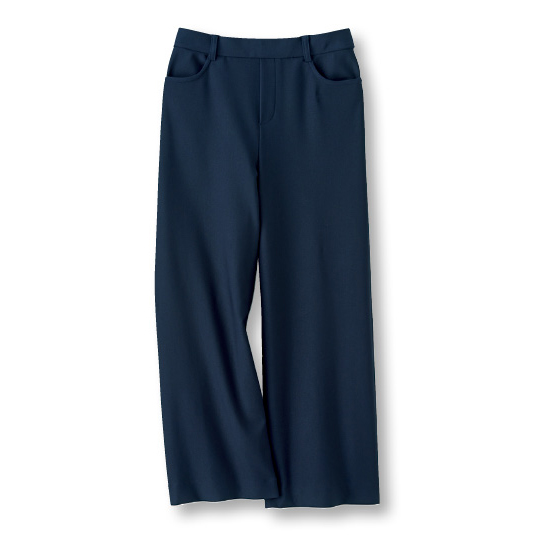 水が染み込みにくい素材。すっきり見えのワイドクロプト。
