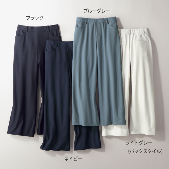 タテヨコに驚くほど伸びる素材で1日中はいてもラクちん。女性の体形に寄り添う設計で、美脚&脚長見えを叶えてくれます。