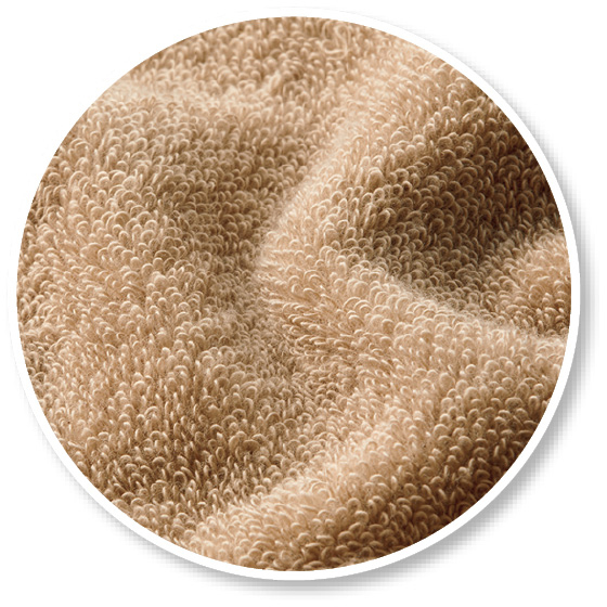 撚りの甘い特殊綿糸がやわらかさの秘密。長めのパイルが水分をしっかりキャッチ。