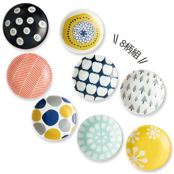 愛らしい手のひらサイズ。食卓が華やぐ北欧風デザインを8柄組で。