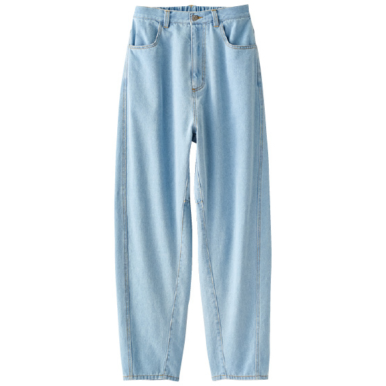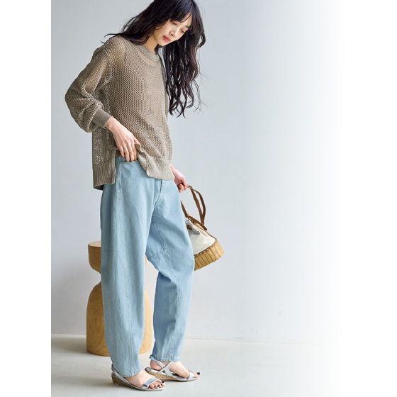 ゆるやかにカーブする丸みのあるシルエット。腰回りや脚線をカバーしながら、今どき見えも叶うデニムです。厚すぎないしなやかな生地で、大人にラクなはき心地。※通年着用できます。