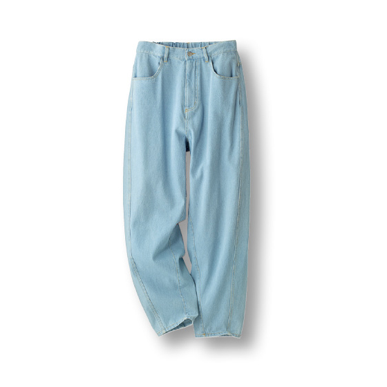 腰や脚線をカバーして、ゆるさが今見えする旬デニム。極端すぎないカーブで大人がはきやすく、厚すぎない柔らか生地ではき心地もラク。※通年着用できます。