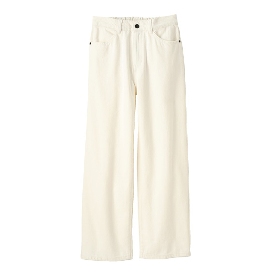 軽くてはきやすく、すとんと落ちるきれいなワイドシルエット。股上はやや深く、ヒップと太ももはゆとりをもたせた安定感のあるはき心地。※通年着用できます。