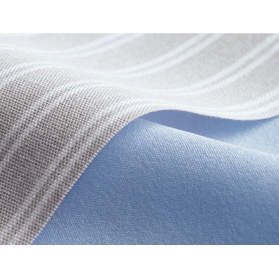 ●素材:無地=ポリエステル100%(織物、平織)、ストライプ=ポリエステル65%・綿35%(織物、ブロード)