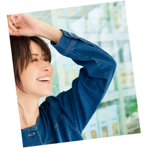 ノーカラーと腰骨丈ですっきり着られる人気Gジャン。前立て横の飾りタックや目立ちすぎない配色ステッチ、肩も少しドロップさせ、やさしい印象で着られます。
