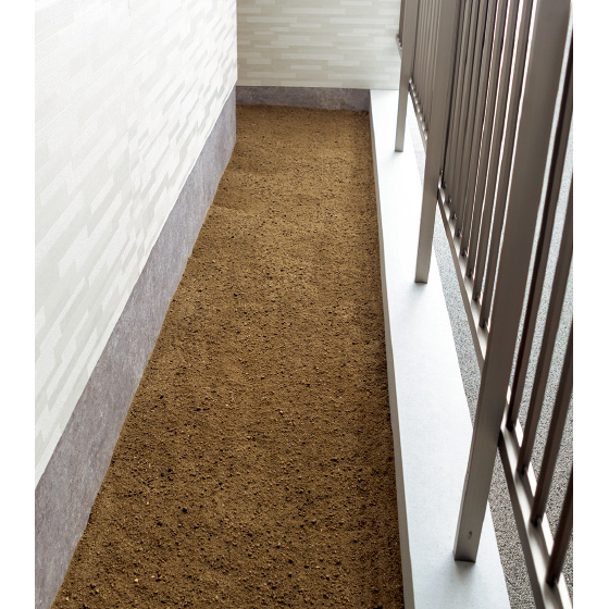 防草効果のある天然素材の砂を使用。凹凸部分や壁際などもきれいに敷きならせます。